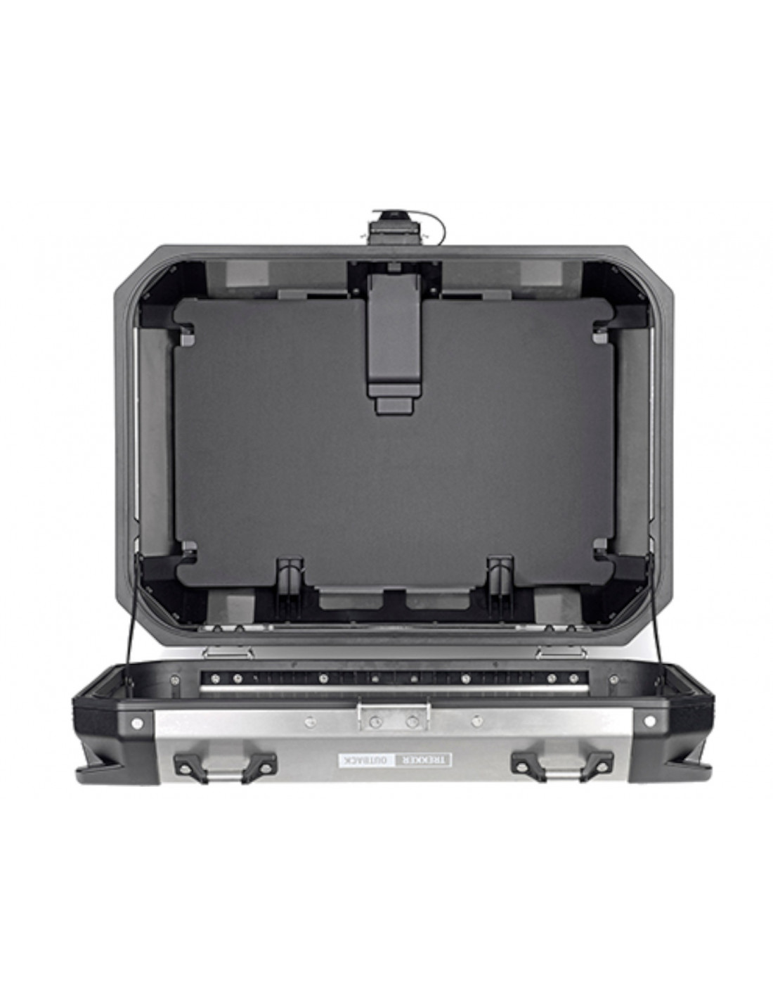 Esta maleta trasera se compone de una estructura de aluminio y cuenta con unos bordes en aluminio profilado, no precisan de un soporte especial, puesto que se puede fijar sobre cualquier modelo de parrilla Monokey.