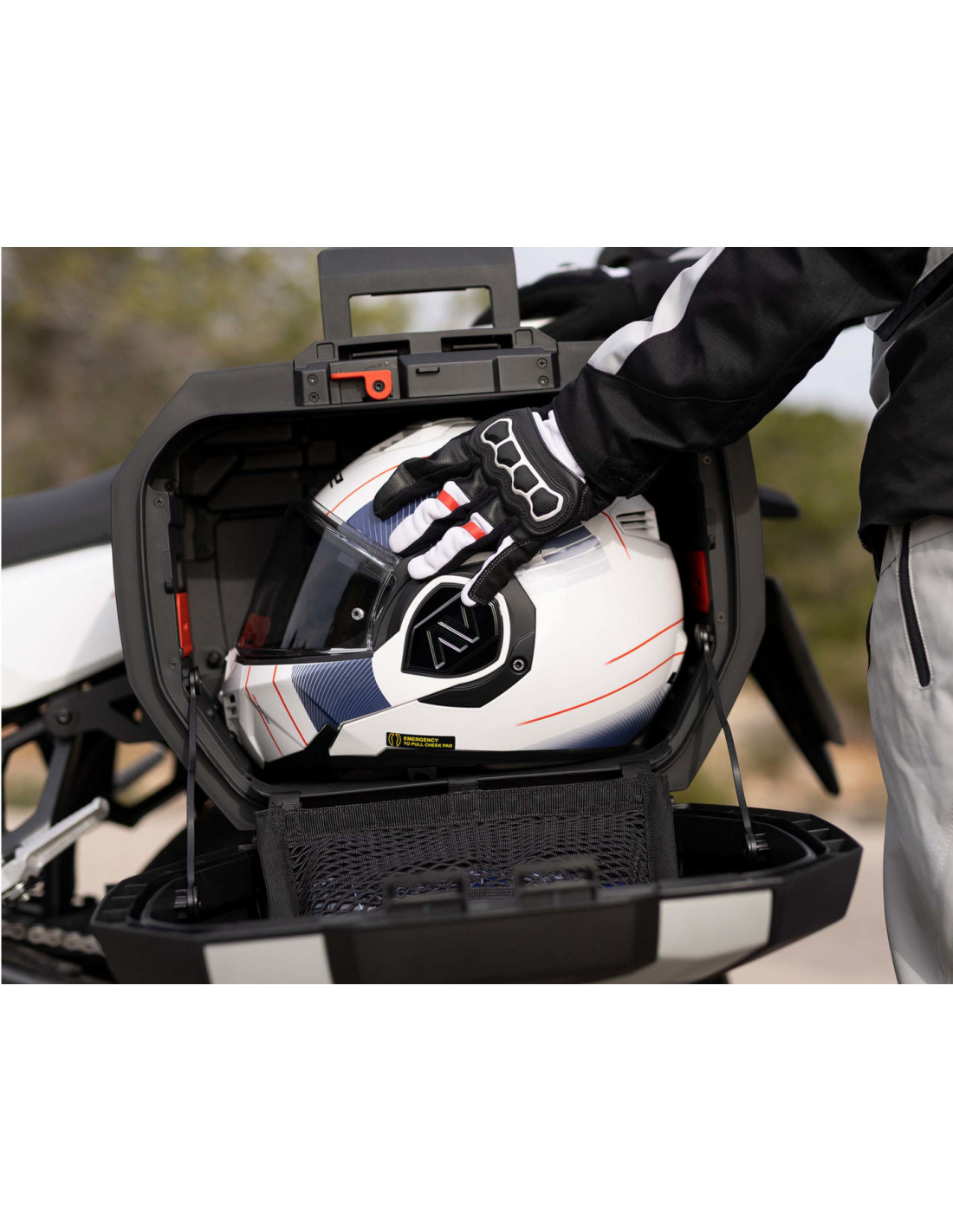 La maleta puede abrirse, cerrarse y retirarse de la moto en cuestión de segundos, así como transportarse con la gran asa retráctil integrada.